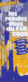 Pour la 14ème année consécutive, Morlaix confie ses clefs aux artistes et compagnies de rue les plus créatifs. En cet été 2000, 5 mercredis sont annoncés du 19 juillet au 16 août, des 3 coups de 19h33 aux 12 coups de minuit.