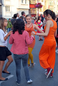 Pendant la semaine précédent la représentation du spectacle, une dizaine de participants volontaires ont suivi 3 matinées d'atelier menées par Brigitte Trémelot et Denis Madeleine de la compagnie de danse Pied en Sol. Le but de cette mini formation : devenir les danseurs-pilotes de ce bal original qui a fait guincher la place Allende ce vendredi soir. Comme nous racontent Lorraine et Flora, élèves de l'école de danse Entrechats, qui se sont lancées pleinement dans l'aventure "pour danser, bien sûr, mais aussi pour rencontrer d'autres gens et participer à un spectacle collectif."